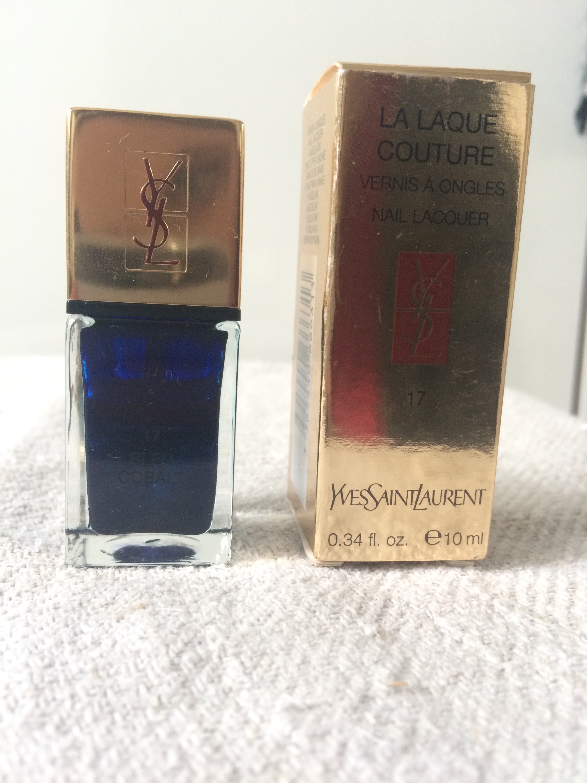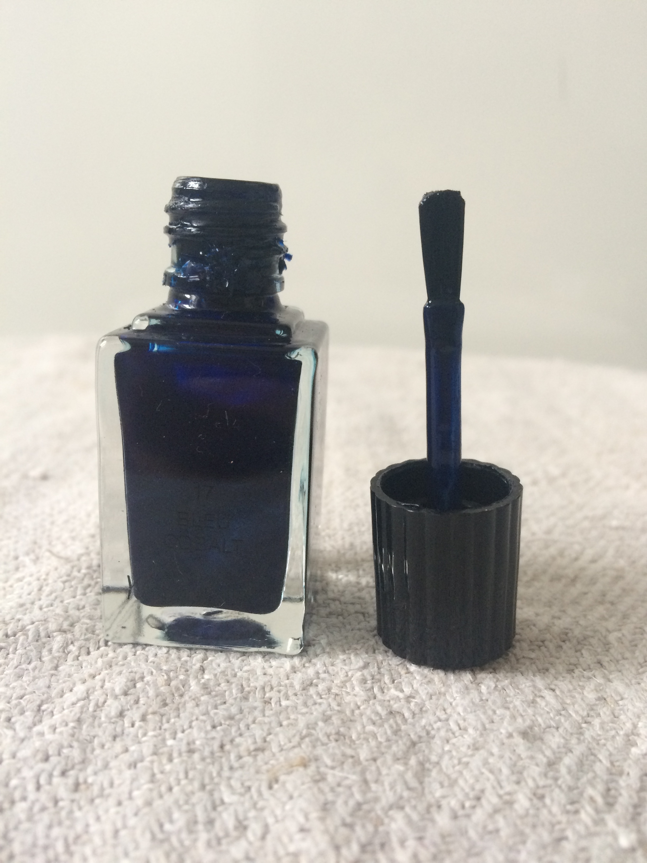 Mon dernier favoris est le bleu colbat 17 de chez Yves Saint Laurent. C'est ma maman qui me l'a offert l'année dernière et j'adore le porter durant l'automne. Cette couleur bleu marine est juste splendide. En une couche ce vernis est opaque. Je sais que je préfère mettre 2 couches. La tenue est irréprochable. J'ai réussi à tenir ce vernis plus d'une semaine et demi, c'est pour vous dire la tenue assez importante.