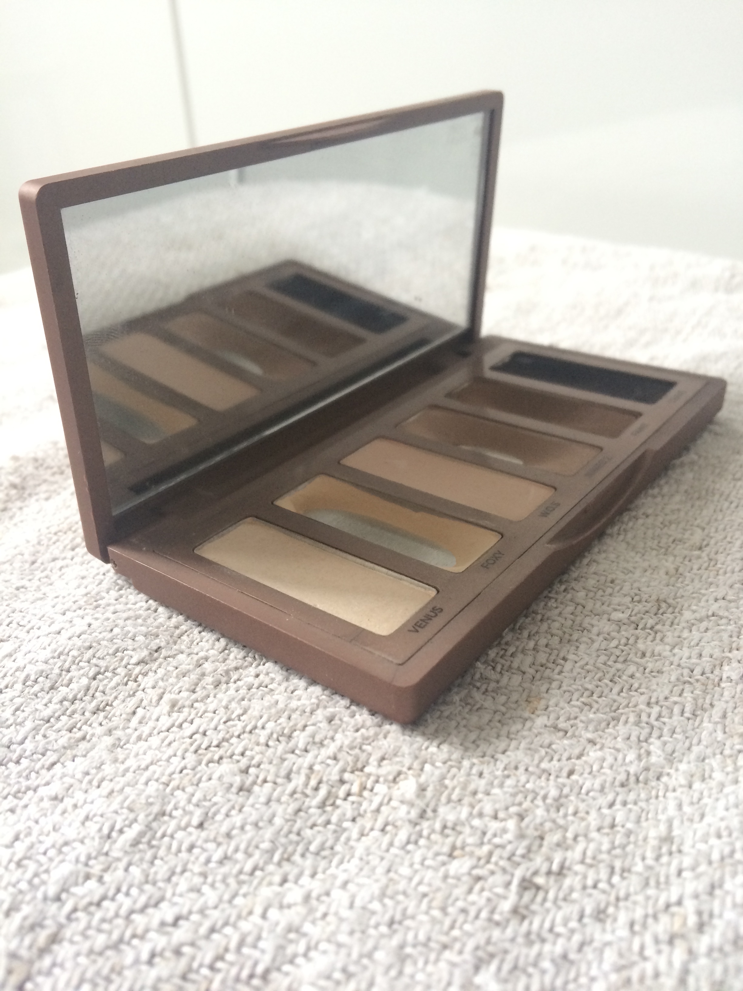 Ma palette « Naked Basics » de chez Urban Decay. Je pense que vous pouvez le voir, cette palette est un favoris de tout les temps. Le fard « Foxy » est sans doute mon préféré. Un fard nude qui tire sur le jaune. Je m’en sers pour unifier ma paupière avant la pose d’un autre fard. Il atténue les petites rougeurs et unifie la paupière lorsque l’on veut simplement porter du mascara.
