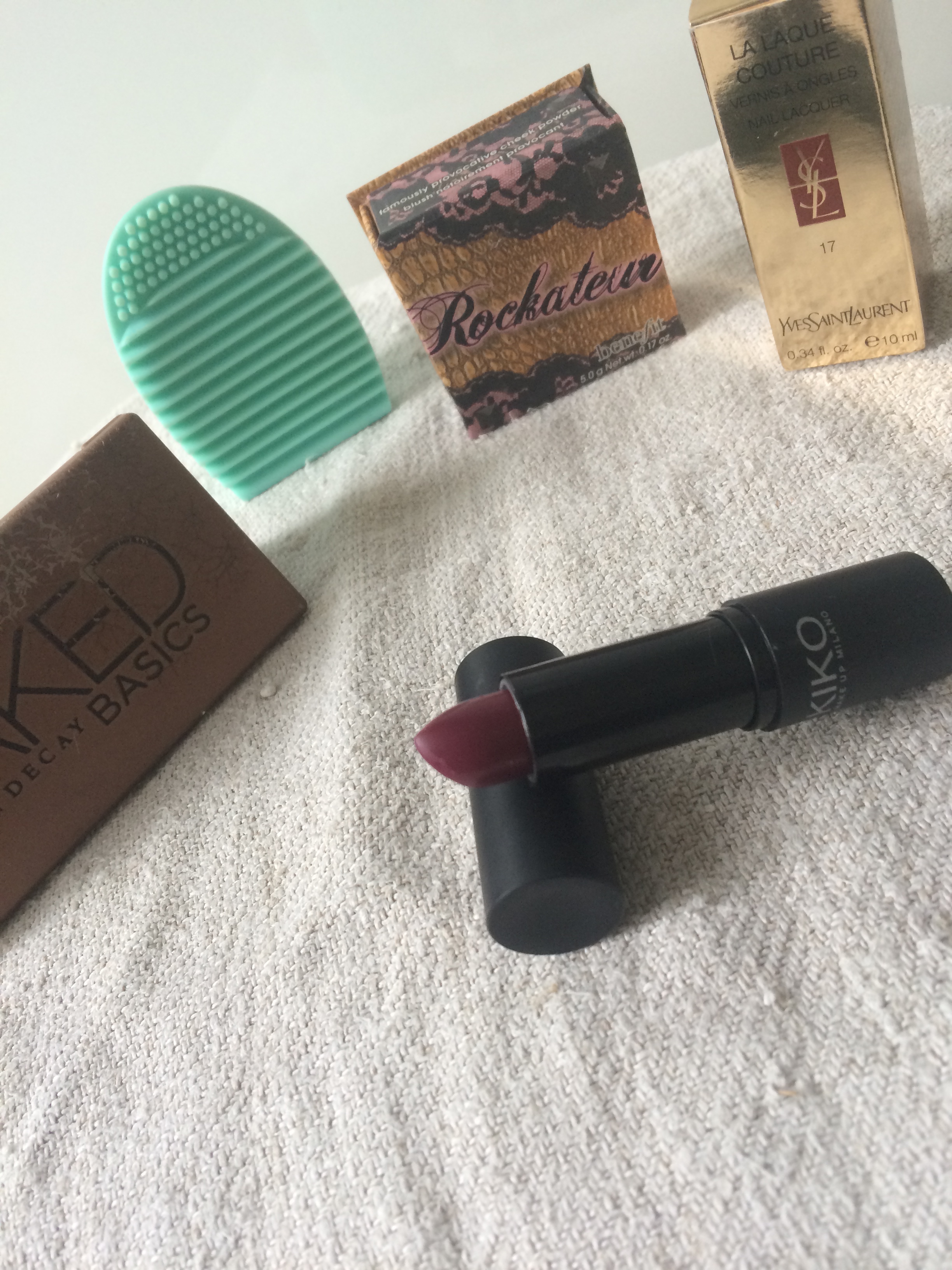 Le blush « Rockateur » de chez Benefit. Ce blush dans les ton pêche-rosé est juste parfait à associer avec tout type de maquillage. Je ne sais pas quoi mettre, je mets cette magnifique couleur. Et l’odeur qui se dégage de ce produit est juste à tomber parfaite. Je trouve qu’il a une odeur très féminine. Comme vous pouvez voir, il commence à se creuser et lorsque je vois ça, les larmes montent. Car vu le prix (32€…), mieux vaut avoir les - 25% de chez Sephora.
